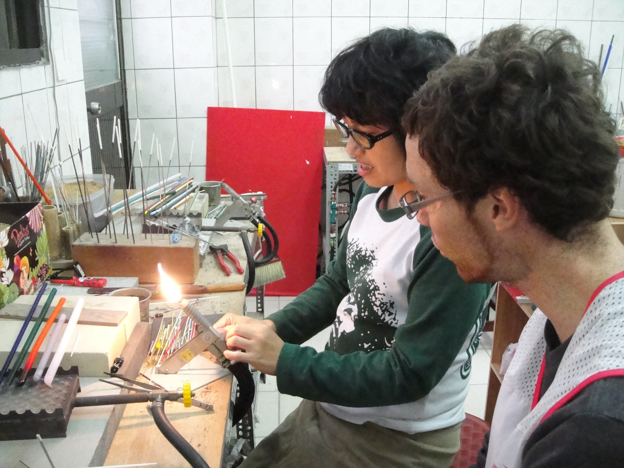 3日早上,安德魯造訪勵馨基金會的琉璃馨工房,對於勵馨在花蓮地區設立準備性職場協助特殊境遇婦女重返一般職場,他覺得「超讚!」,因此他也好奇地詢問有關琉璃珠的意涵與製作過程,經由馨工房的資深老師講解與教授,安德魯完成了琉璃珠燒製初體驗。勵馨花蓮服務中心感謝上帝一路守護安德魯,更祝福他能平安地完成這次單車環島募款壯舉,所以贈送安德魯一串含有守護意涵的「祖靈之眼」項鍊,令安德魯對琉璃珠的美與花蓮蘊涵的多元文化更加印象深刻。